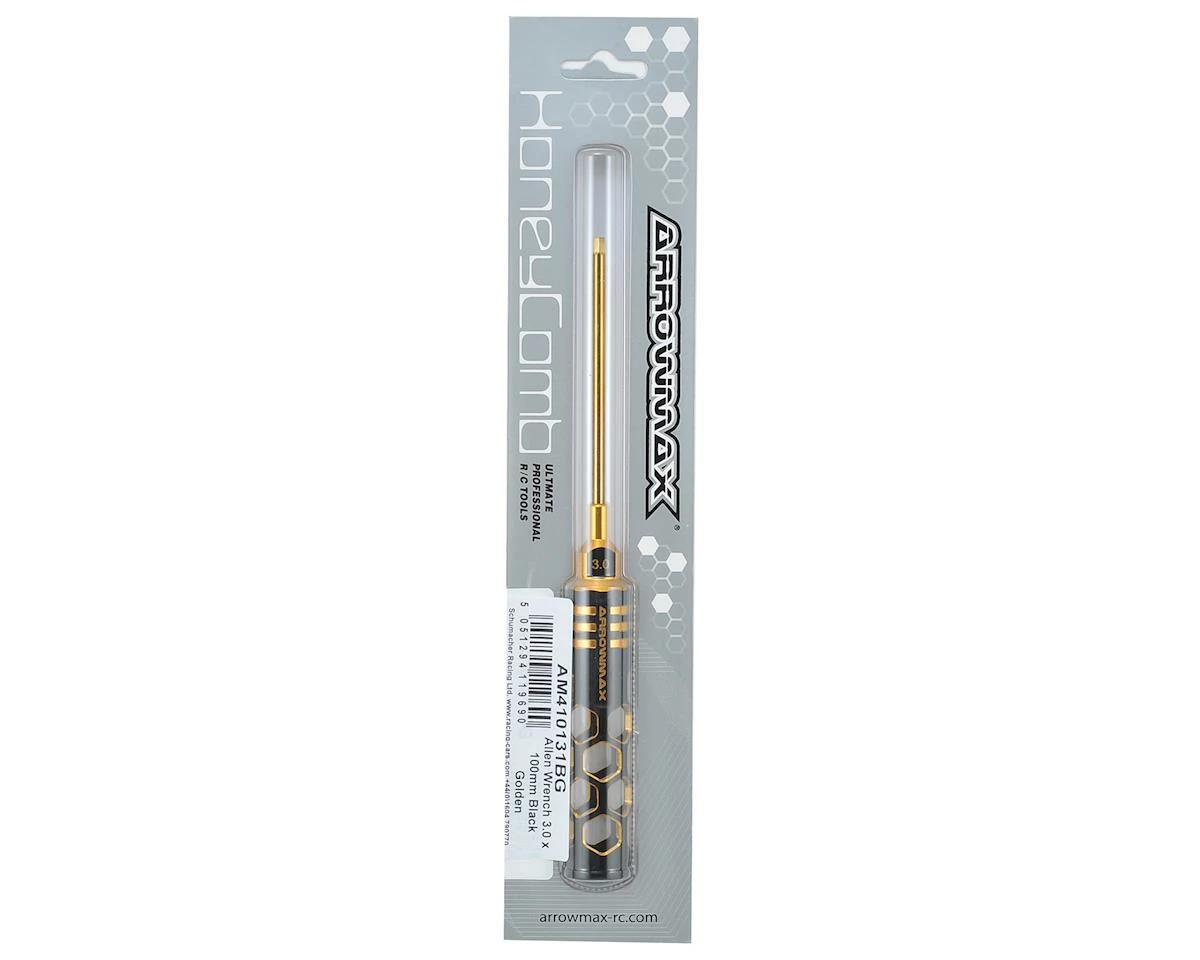This is an Arrowmax Limited Edition 3mm Metric Allen Wrench. This honeycomb tool feature an eye-catching hollow honeycomb handle design with a rich black and gold color finish. Spring steel titanium nitride tip and lexan bottom cover provide a more comfortable, controllable and lighter feeling.