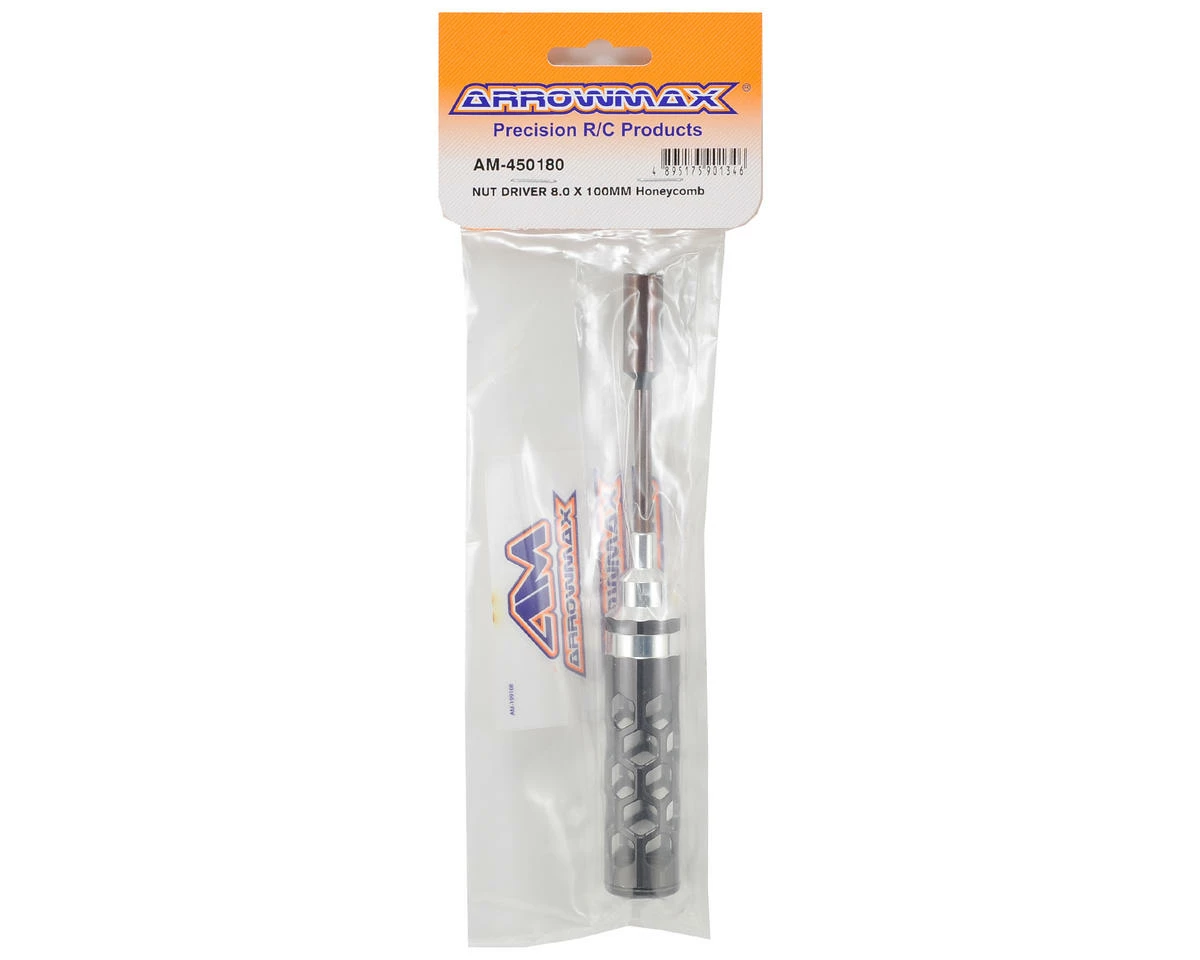 This is an Arrowmax 8.0mm Honeycomb Nut Driver. Arrowmax tools feature an eye-catching, light weight, hollow honeycomb handle design. The 100mm long tips are spring steel and titanium nitride coated for durability. When combined with the lexan cap, you get a comfortable, controllable and lighter feeling tool that makes wrenching easier.