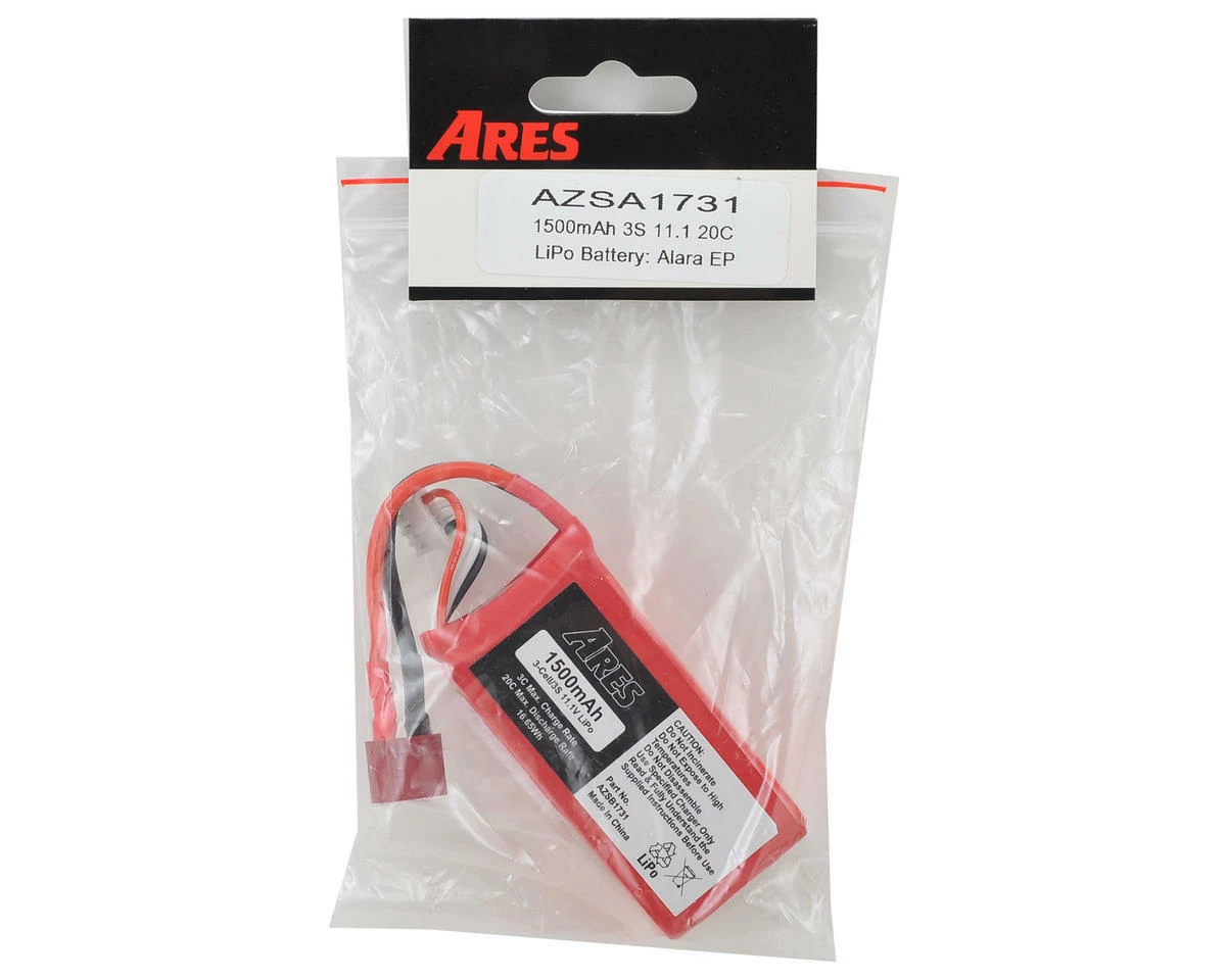 This is a replacement Ares 11.1V 3S 20C LiPo Battery Pack with 1500mAh of capacity for the Alara EP. This battery features a T-Style connector.