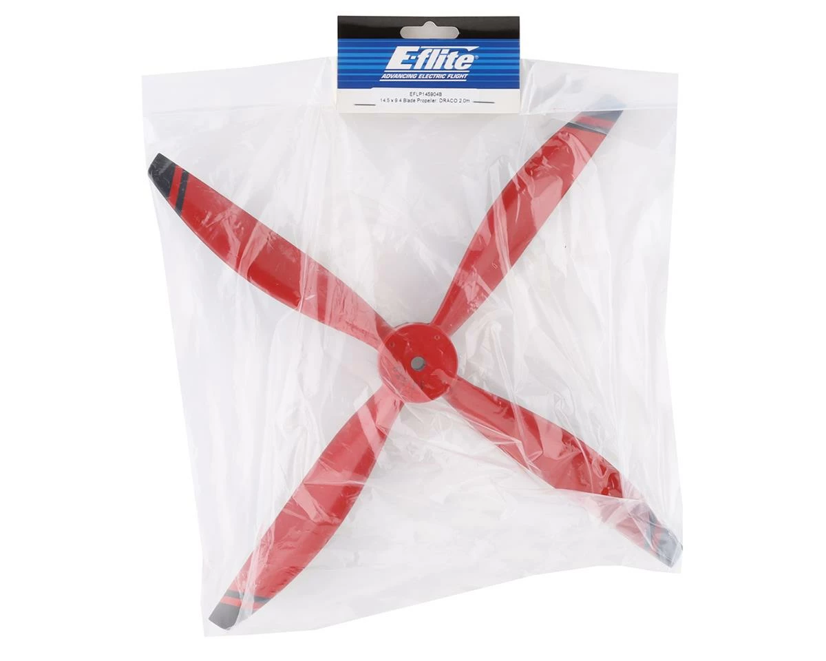 E-flite 14.5×9 4-Blade Propeller. This is a replacement propeller intended for the E-flite DRACO 2.0m. Package includes one propeller.