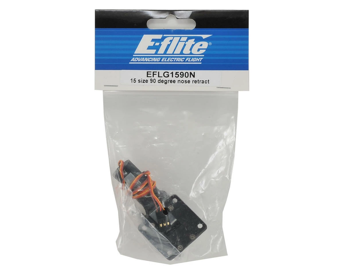 E-flite 15 Size 90 Degree Nose Retract. This is a direct replacement for the E-flite T-28 1.2m airplane. Package includes nose wheel retract mechanism and hardware.