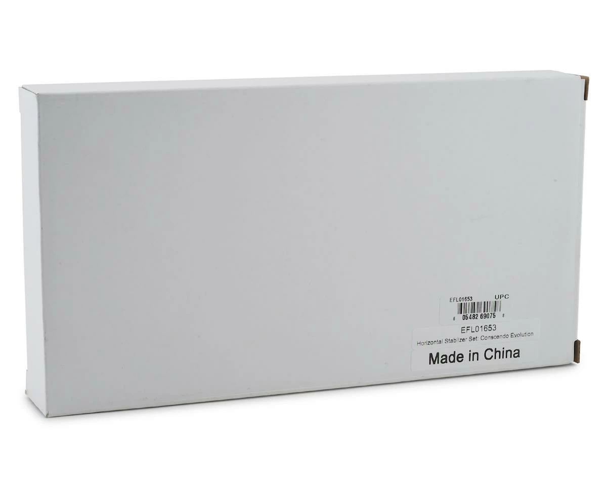 E-flite Conscendo Evolution Horizontal Stabilizer. Package includes replacement left and right side horizontal stabilizer and connector tube.