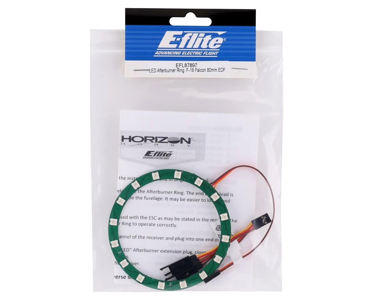 E-flite F-16 Falcon LED Afterburner Ring. This optional afterburner ring is designed to give your F-16 Falcon the nice glow of an afterburner during flight and takeoff. Package includes one LED ring and one y-harness.