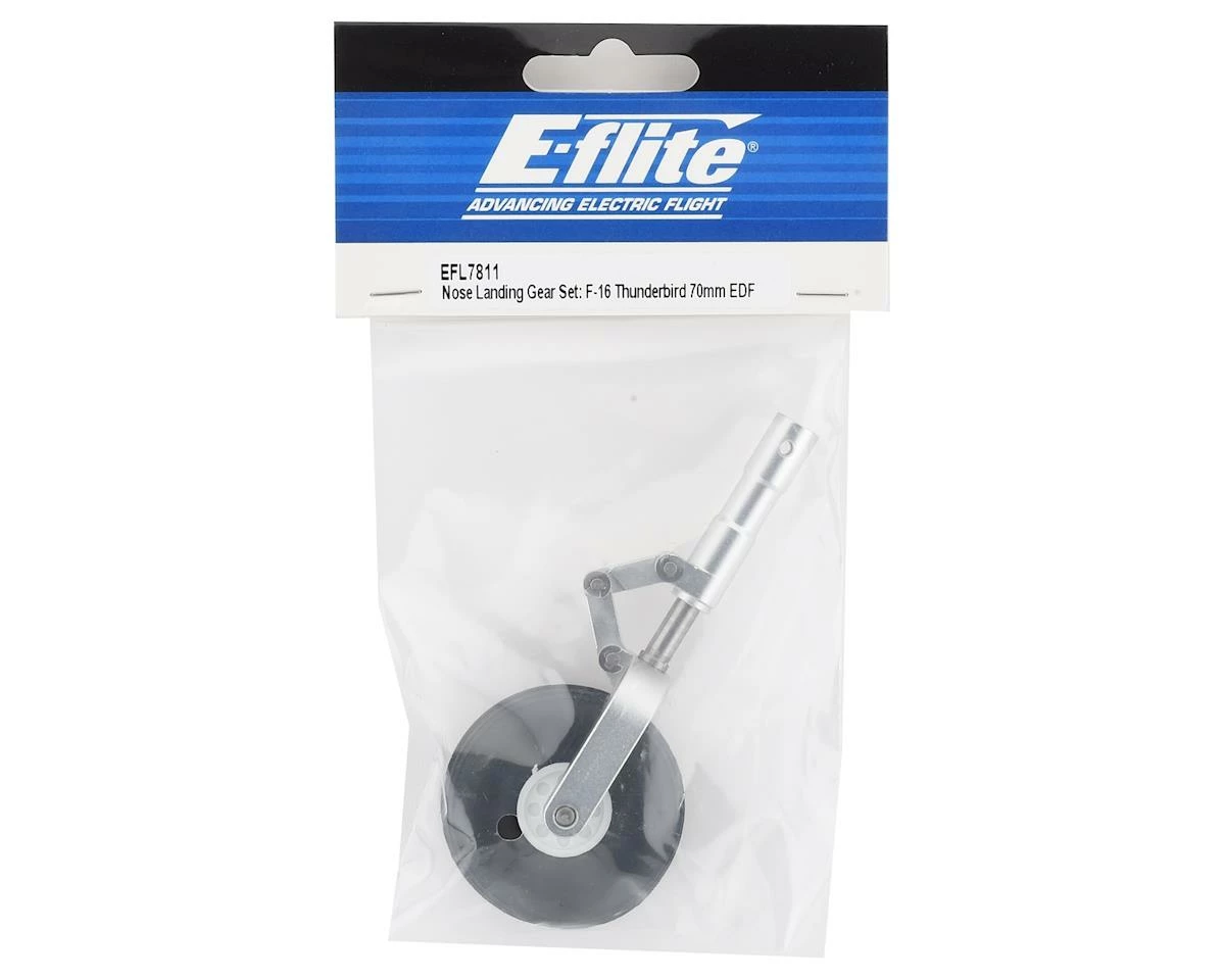 This is a replacement E-flite Nose Landing Gear Set for the F-16 Thunderbird Electric Ducted Fan Jet Airplane. This set comes assembled and ready for installation.
