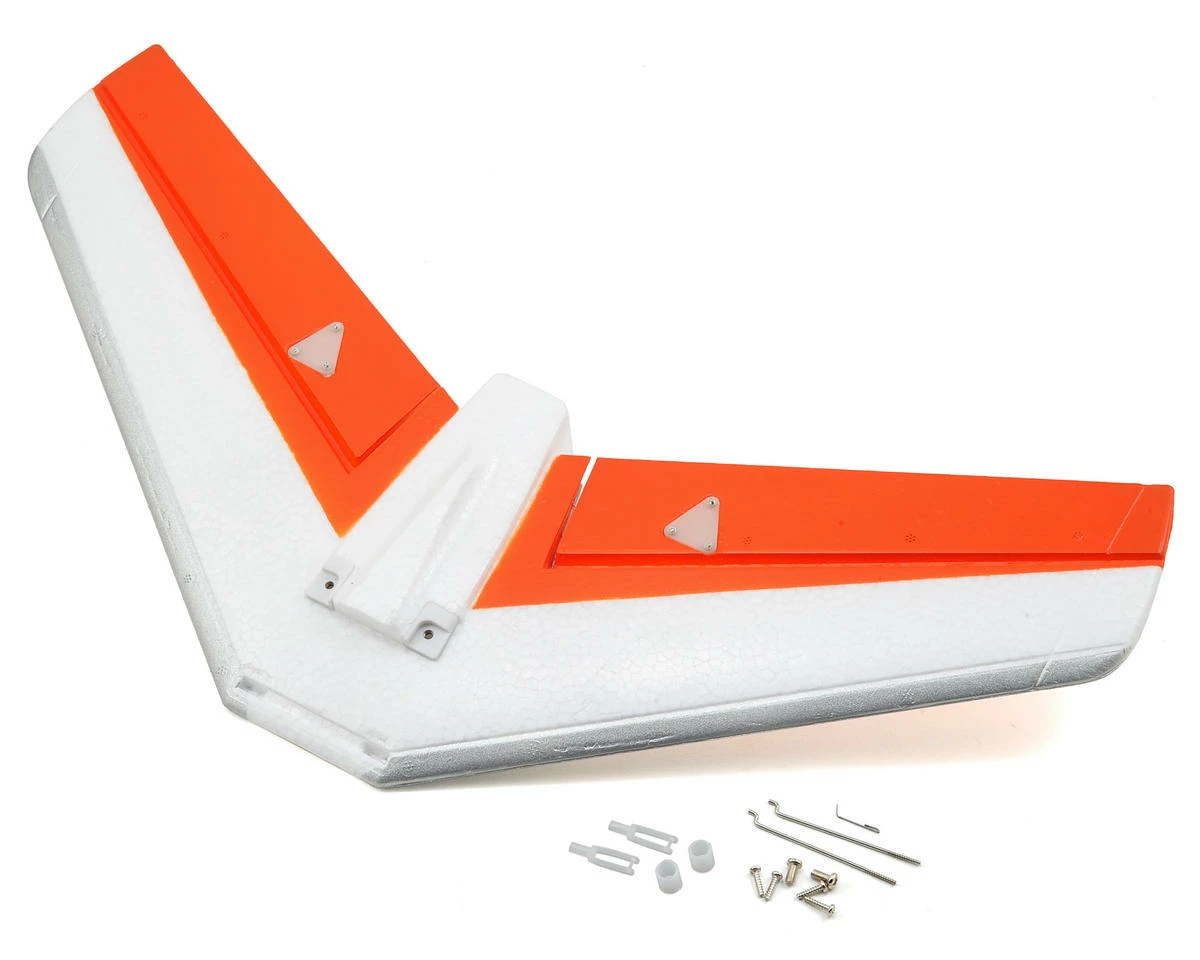 This is a replacement E-flite FJ-2 Fury Stabilizer Wing. This wing is painted and assembled, but does require assembly of the control rods (included).
