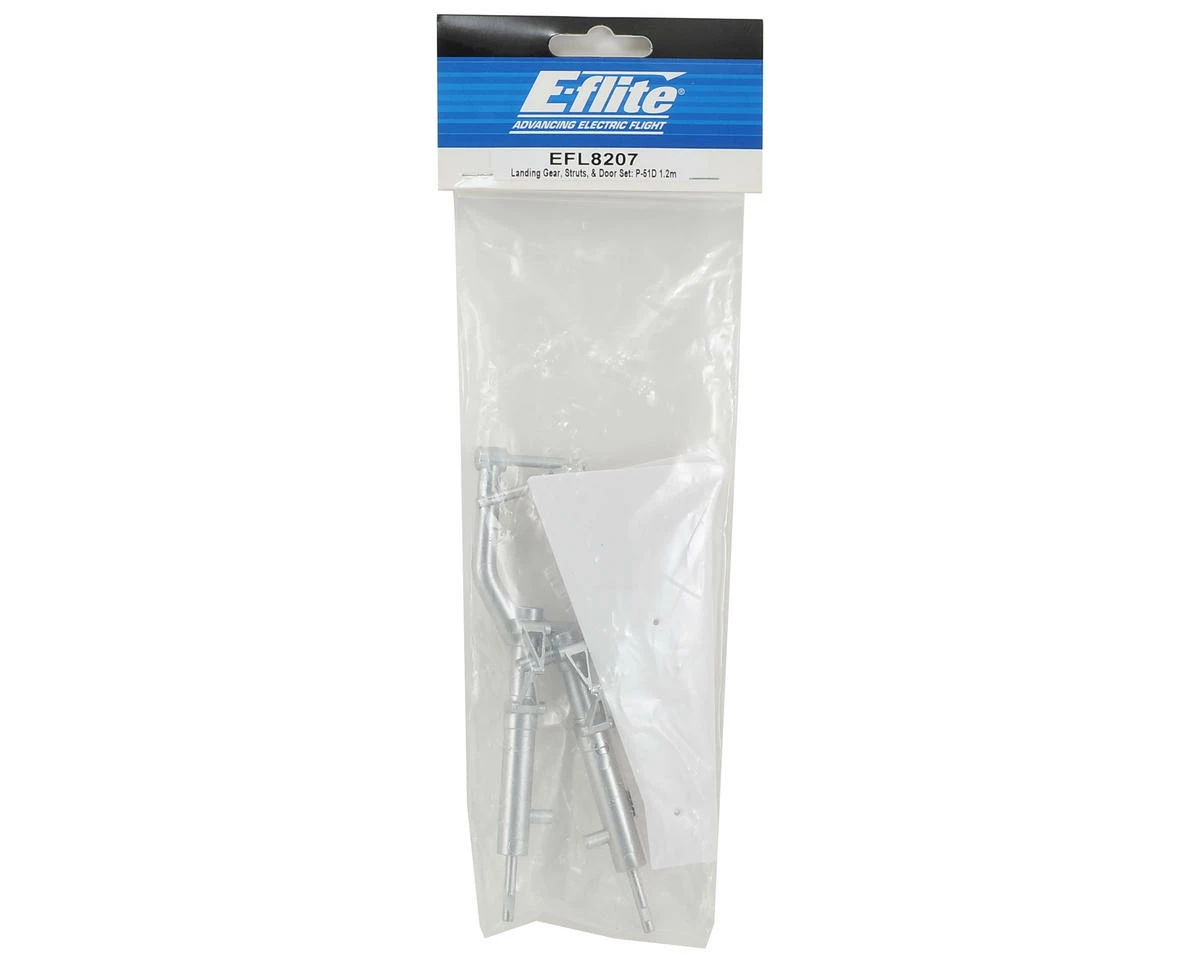 E-flite P-51D Mustang 1.2m Landing Gear & Door Set. Package includes right and left side landing gear struts and landing gear doors, as well as replacement hardware.