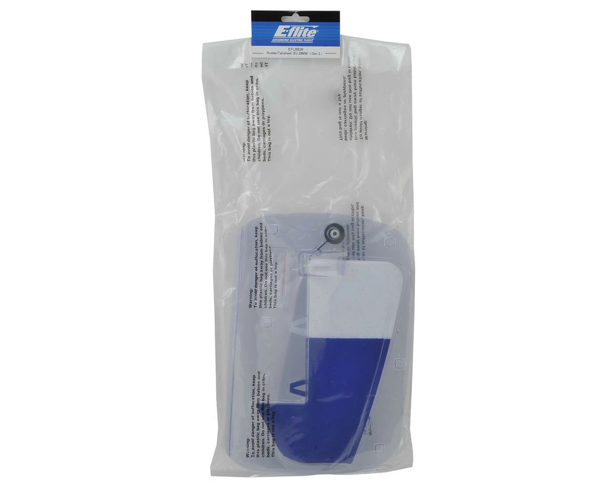 E-flite Sukhoi SU-29mm Gen 2 Rudder/Tailwheel. Package includes replacement rudder with factory installed tail wheel and hardware.