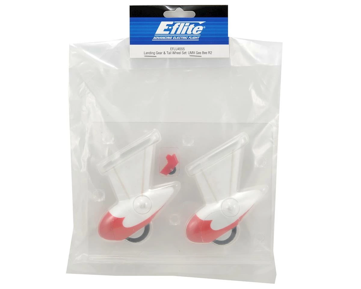 This is a replacement E-flite Landing Gear & Tail Wheel Set, and is intended for use with the E-flite UMX Gee Bee R2 airplane.