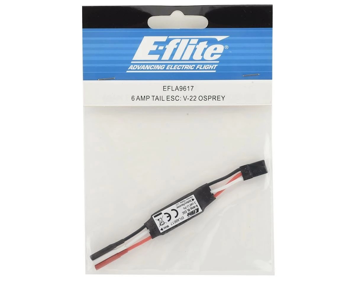 This E-Flite 6-Amp Tail ESC is a replacement part for the E-Flite V-22 Osprey. This package contains one Tail ESC.