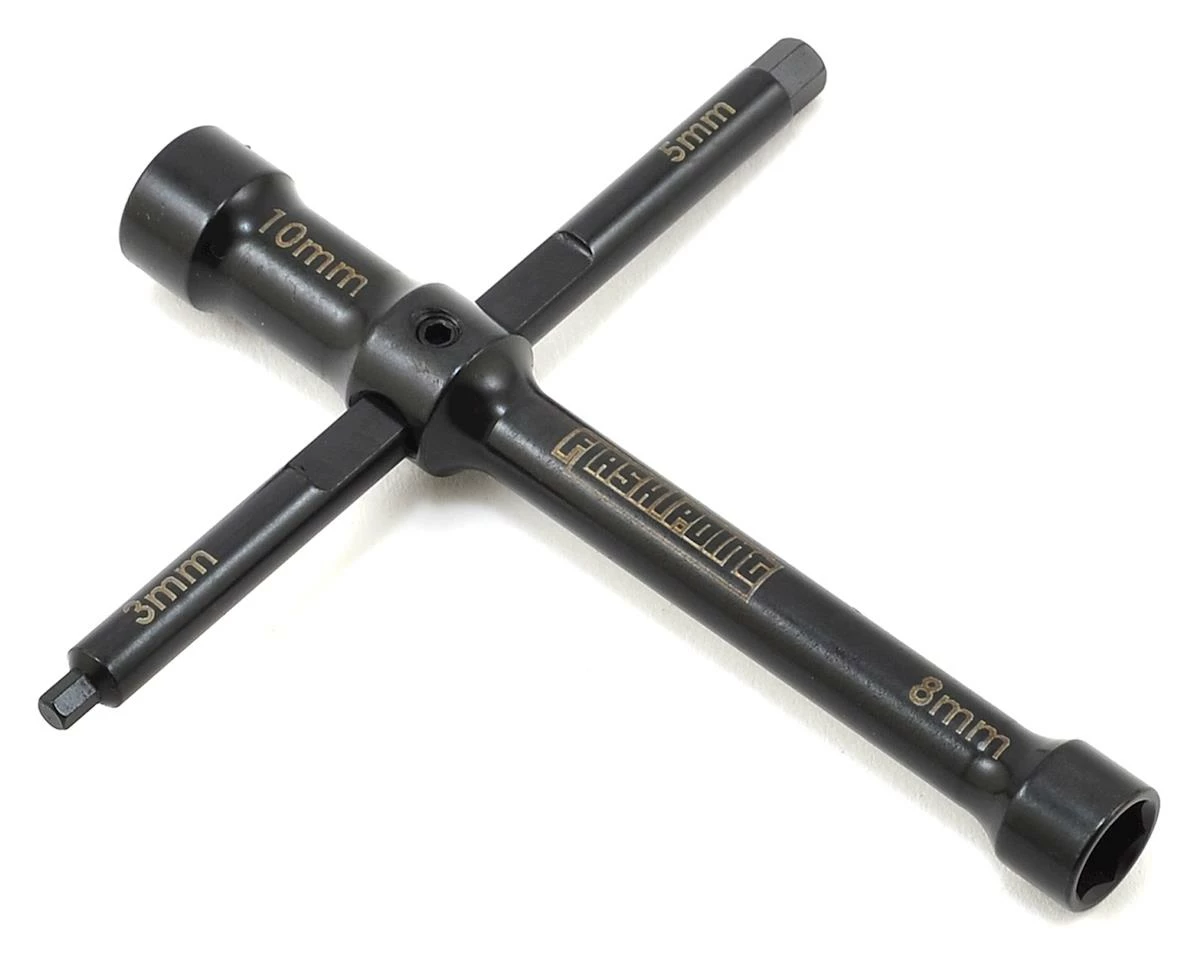 Flash Point Racing 4-in-1 Multi-Wrench. This 4 in 1 wrench features 8mm and 10mm nut drivers, and 2mm and 5mm hex drivers.