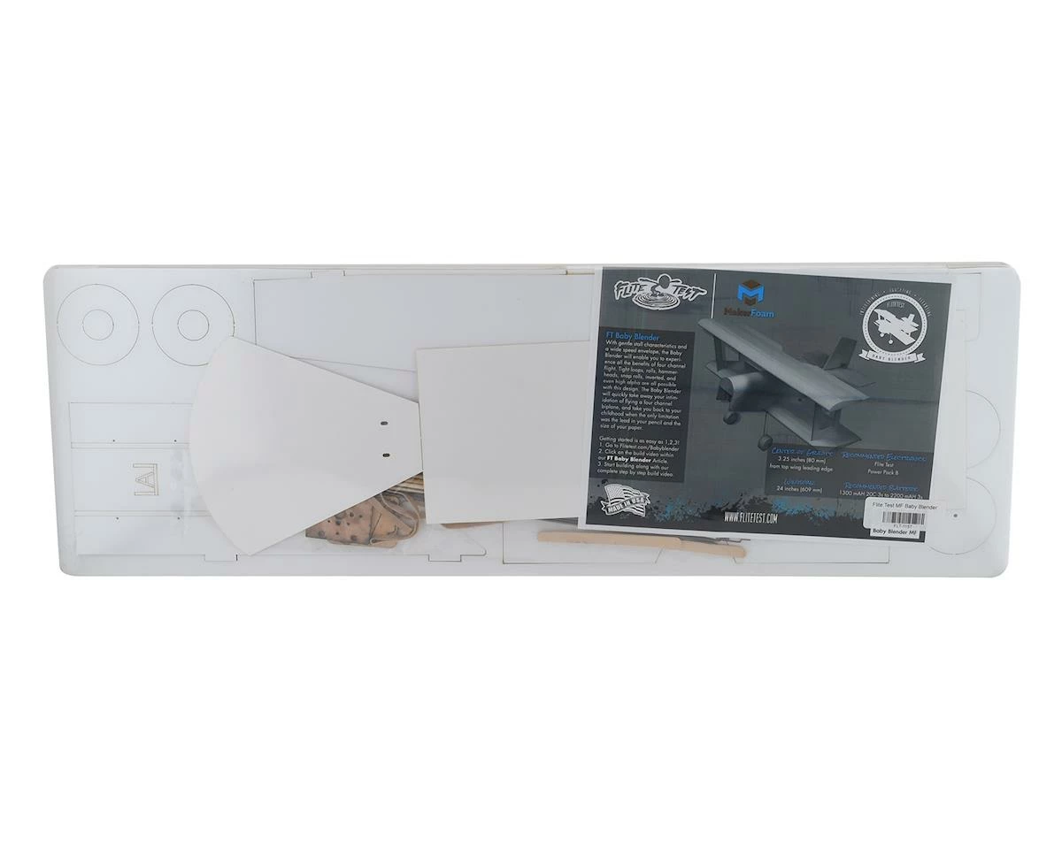 Now manufactured with Master Foam the Flite Test Baby Blender Swappable is an excellent transition into four channel flying and more advanced building techniques. With gentle stall characteristics and a wide speed envelope, the Baby Blender will enable you to experience all the benefits of four channel flight. Tight loops, rolls, hammerheads, snap rolls, inverted, and even high alpha are all possible with this design. The Baby Blender will quickly take away your intimidation of flying a four channel biplane, and take you back to your childhood when the only limitation was the lead in your pencil and the size of your paper.Â