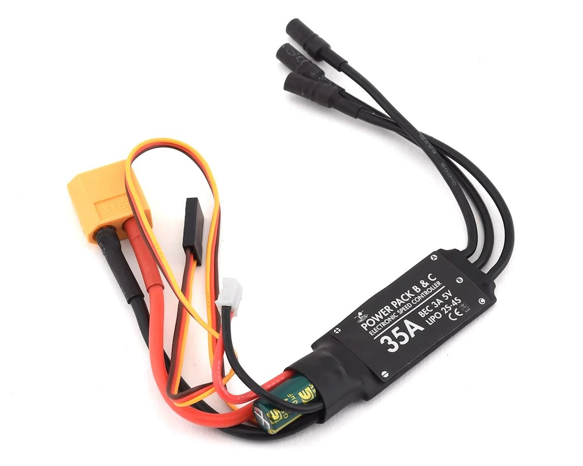 - Pre-Soldered 3.5mm Bullet Connectors: This makes attaching to our FT Radial Motors a breeze. We suggest using the FT 35A ESC with the Power Pack B and Power Pack C sized radial motors.