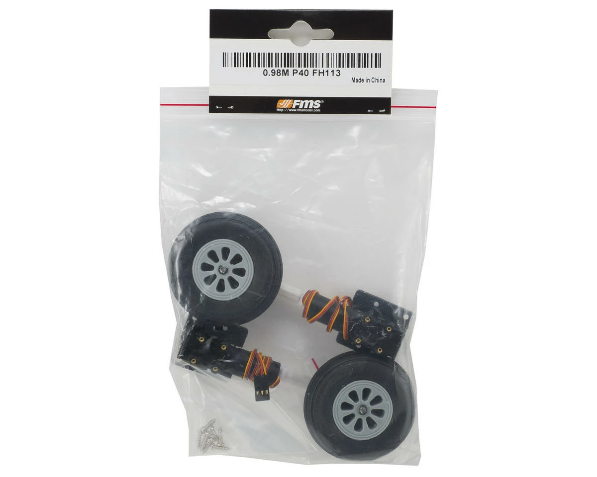 This is a replacement FMS Main Landing Gear System. This is compatible with the FMS P-40B Warhawk 980mm airplane. Package includes right and left side landing gear, and hardware.