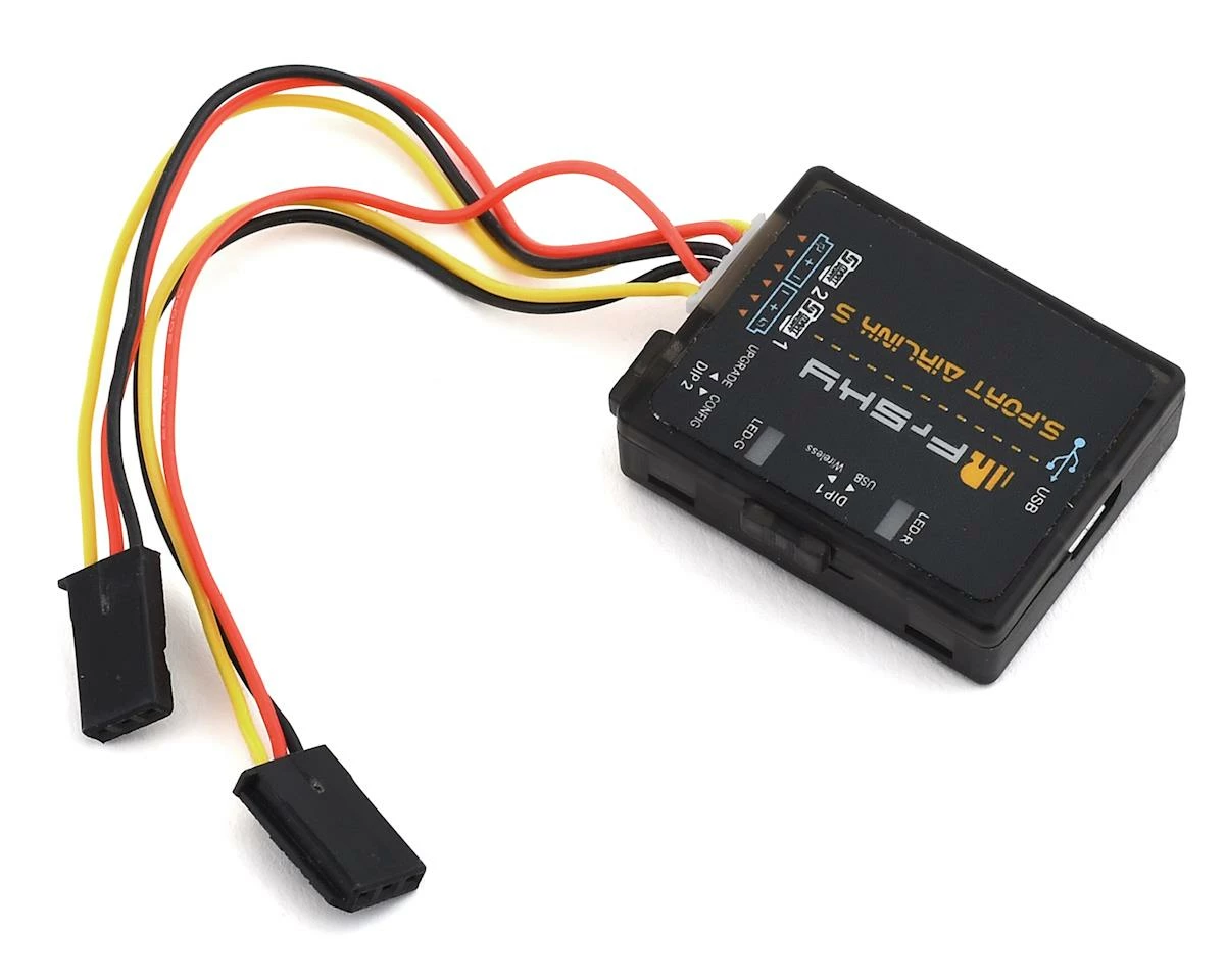 The FrSky Airlink S is a connection tool that allows users to program and flash firmware on certain devices such as S6R & S8R receivers. It can be used by connecting the Airlink S via USB to a Windows computer. Additionally, the Airlink S can connect to devices wirelessly via Bluetooth, which allows for real time configuration and telemetry viewing.