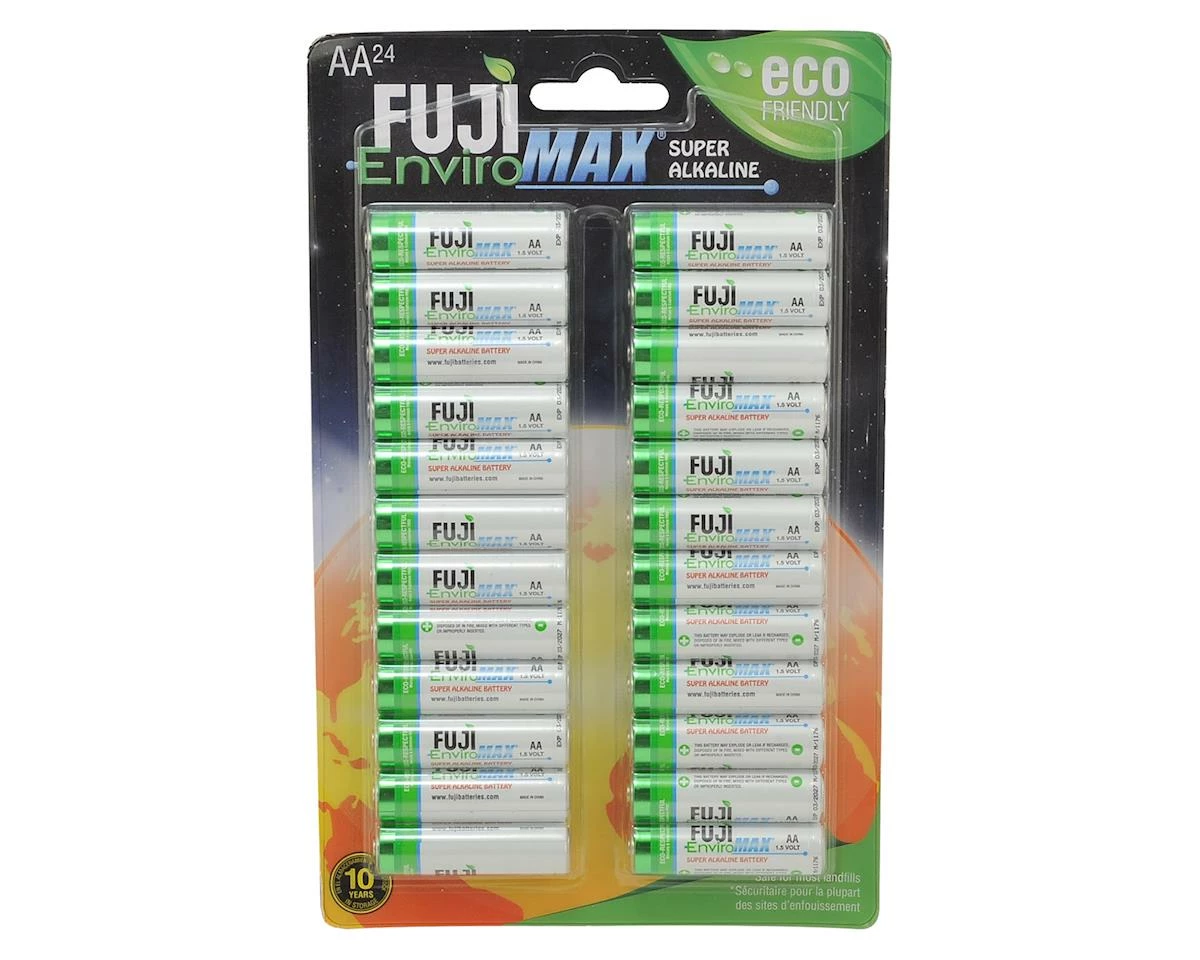 Fuji EnviroMAX AA Super Alkaline Batteries are eco-respectful. From the way they are made to even the date coded packaging. They are Cadmium, and PVC free, and even the paper they’re packaged with is recycled.