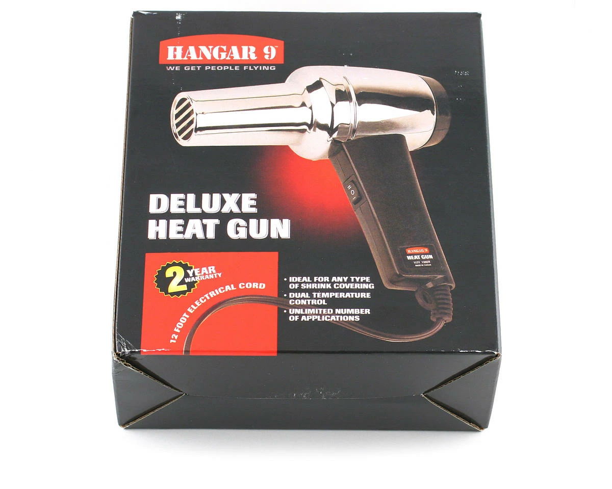 This is the Hangar 9 Heat Gun. With 1000 watts of power, adjustable heat levels and a removable nozzle to concentrate heat where it’s needed. Rubber-coated handles ensure firm grip.