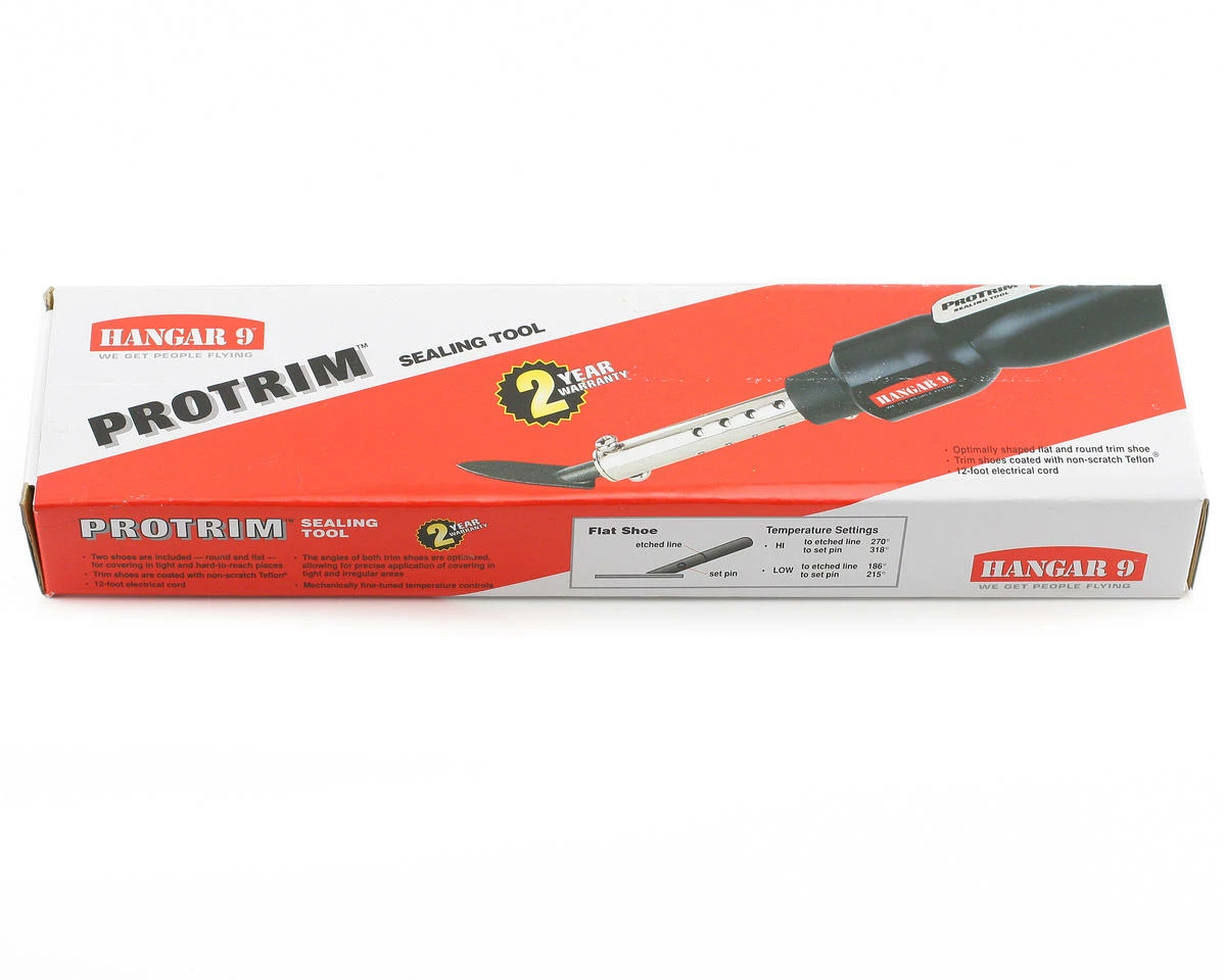 The ProTrim is supplied with an extra long 12′ 110/120V AC cord, making it great for covering large airplanes. It also comes with a table-top stand to protect your work surface from burns. Plus, the ProTrim has a 2-year warranty, making it an exceptional value.