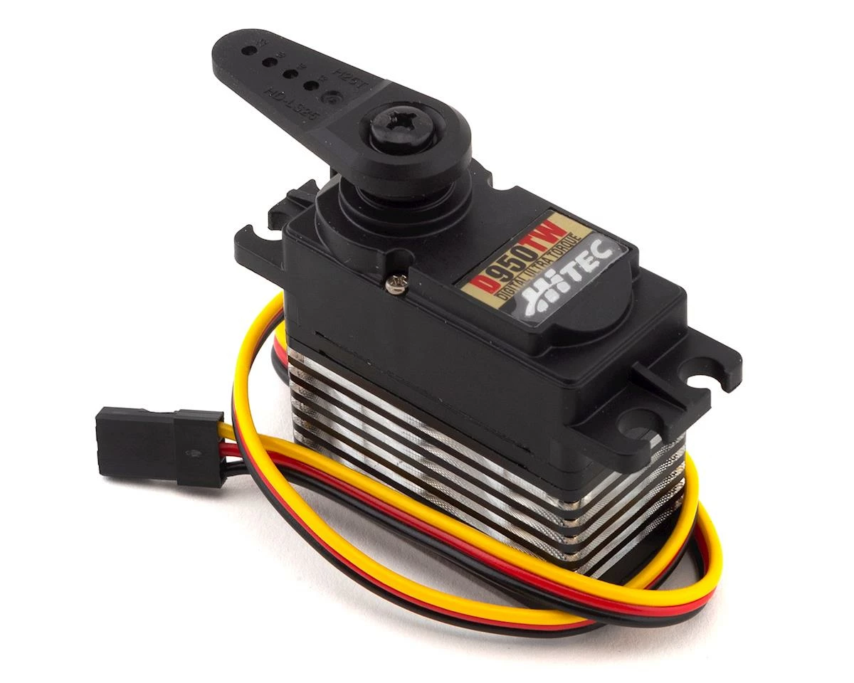 The Hitec D950TW D-Series Ultra Torque Titanium Gear Digital Servo features cutting edge, custom engineering. Combining industry leading high-resolution, state-of-the-art ultra-response technology with a 32-bit MCU and 12-bit ADC for unprecedented programmability and flexibility, these servos deliver significantly smoother movement. The speedy, powerful line operates on a wide 4.8 ~ 8.4 voltage range, allowing use with any common battery chemistry without the need for adapters or regulators. Featuring Hitec’s industry standard 25-tooth output spline with 3mm hex screw, each D-Series servo brings monster performance never known before in the market.