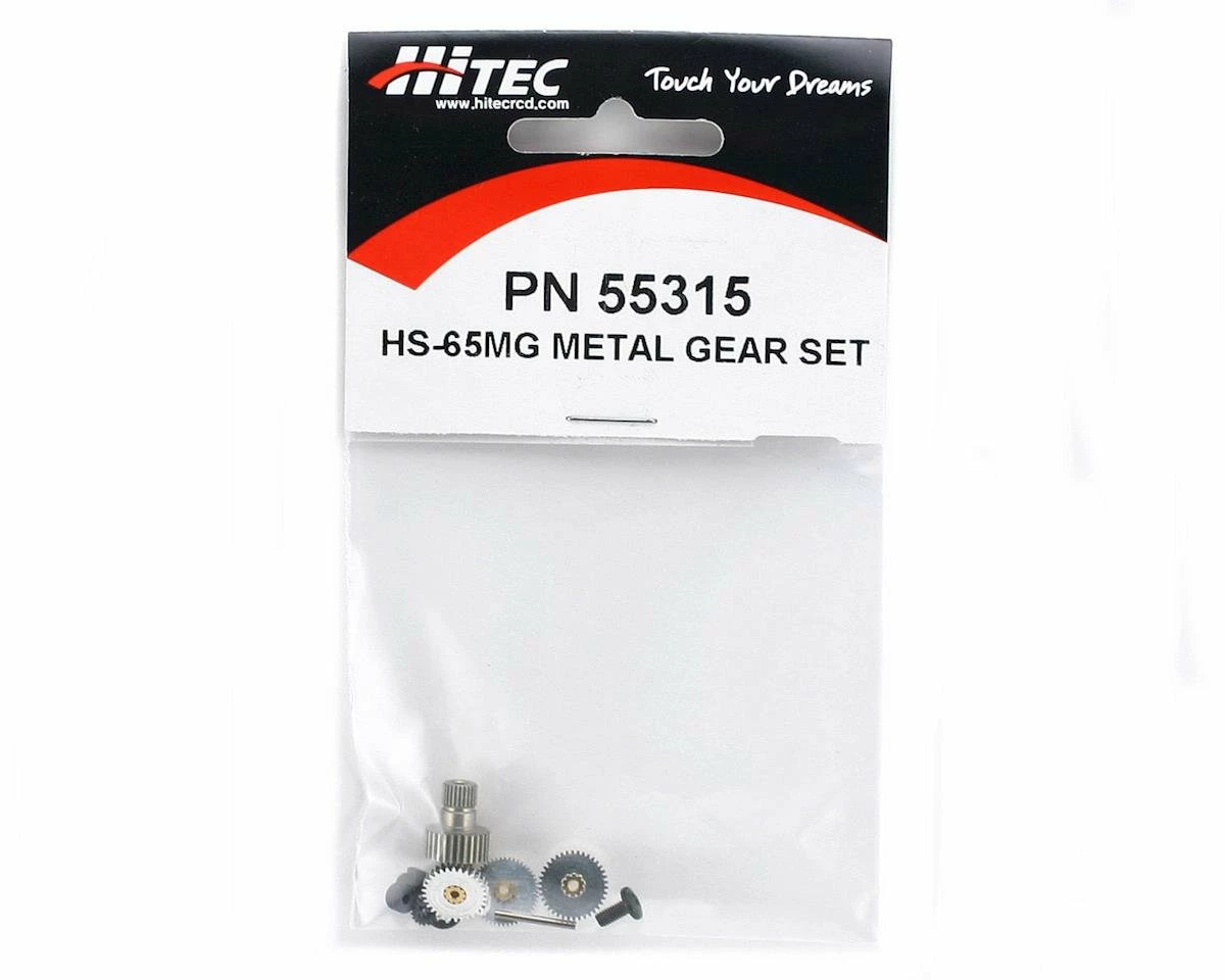 This is the replacement Metal Gear Set for the Hitec HS-65MG Servo. Metal gears provide strength and shock resistance, and replacing worn gears restores proper performance to your servo.