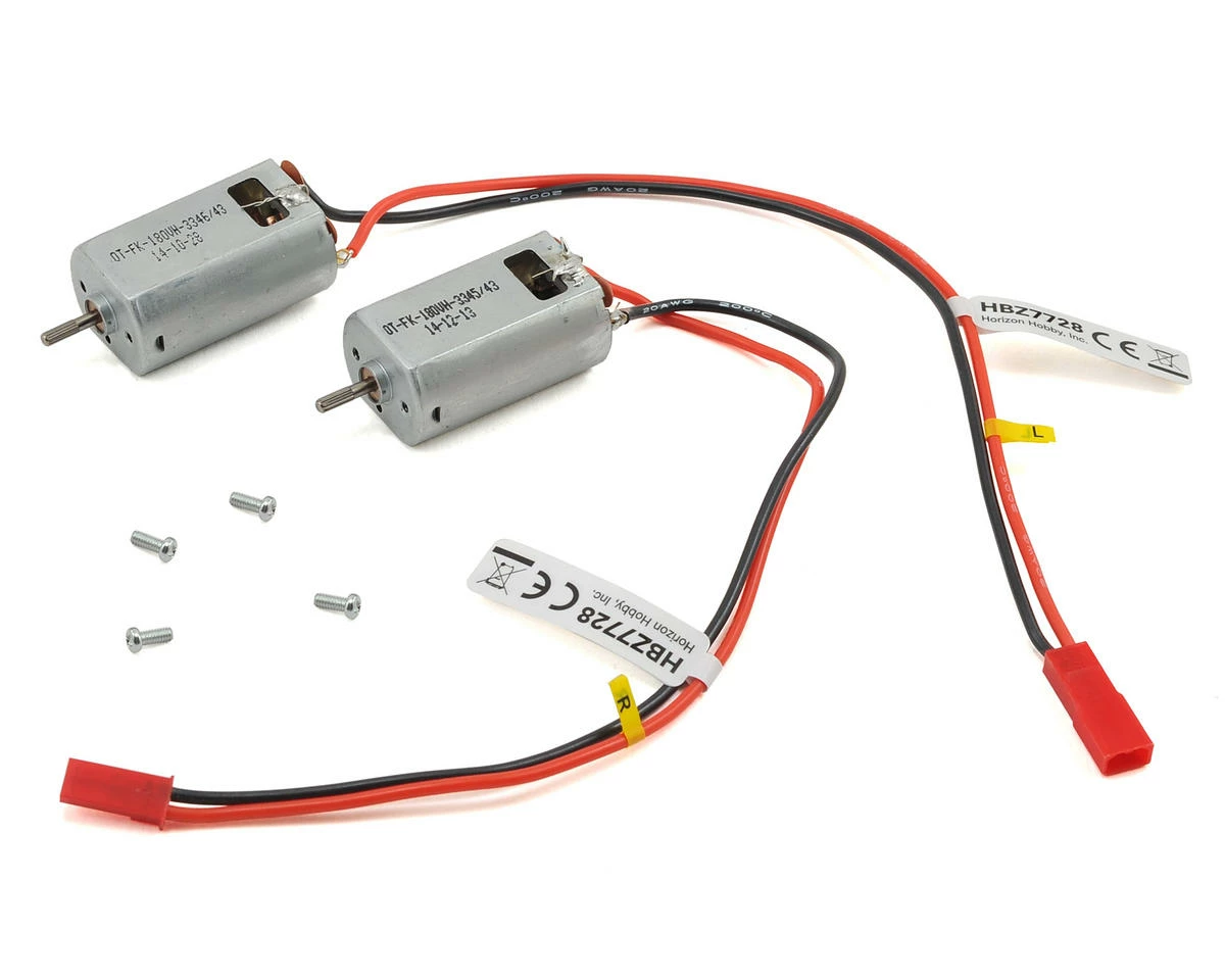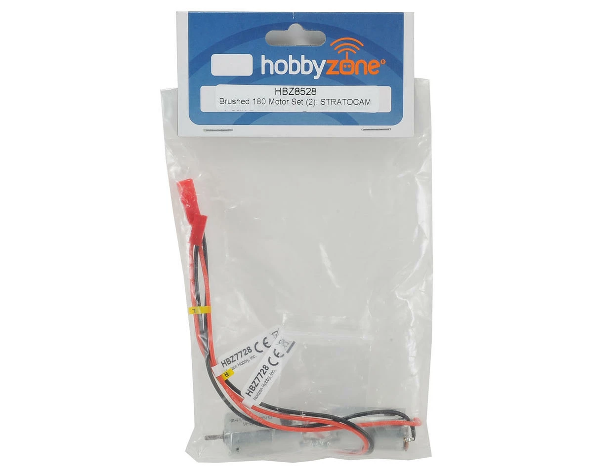 This is a pack of two replacement HobbyZone Brushed 180 Motors. These motors come installed with wire leads and four mounting screws. These motors are also marked “L” and “R” on the wire leads.