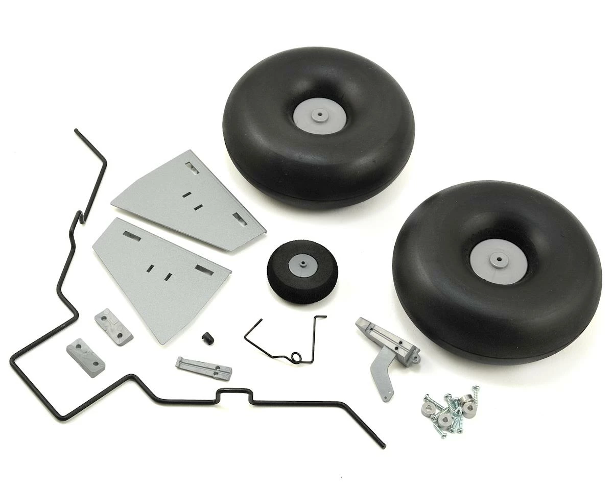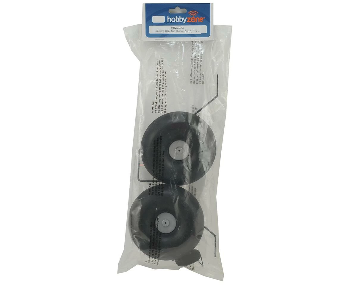 HobbyZone Cub S+ Landing Gear Set. Package includes the wheels, axle and hardware needed to build a complete replacement landing gear assembly.