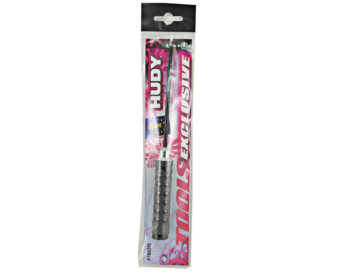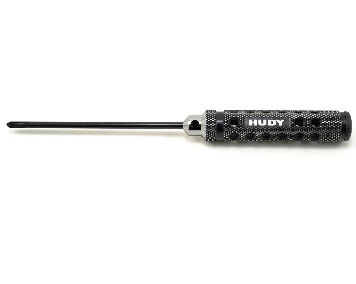 This is the Hudy Limited Edition 4mm Phillips Screwdriver. Featuring a super-lightweight CNC-machined Swiss 7075 T6 aluminum handle with a diamond pattern surface for unsurpassed grip. The handle includes a black plastic cap press fit into the handle end. Optional color-coded plastic caps (violet, red, blue) are available to customize the tools to your specifications.