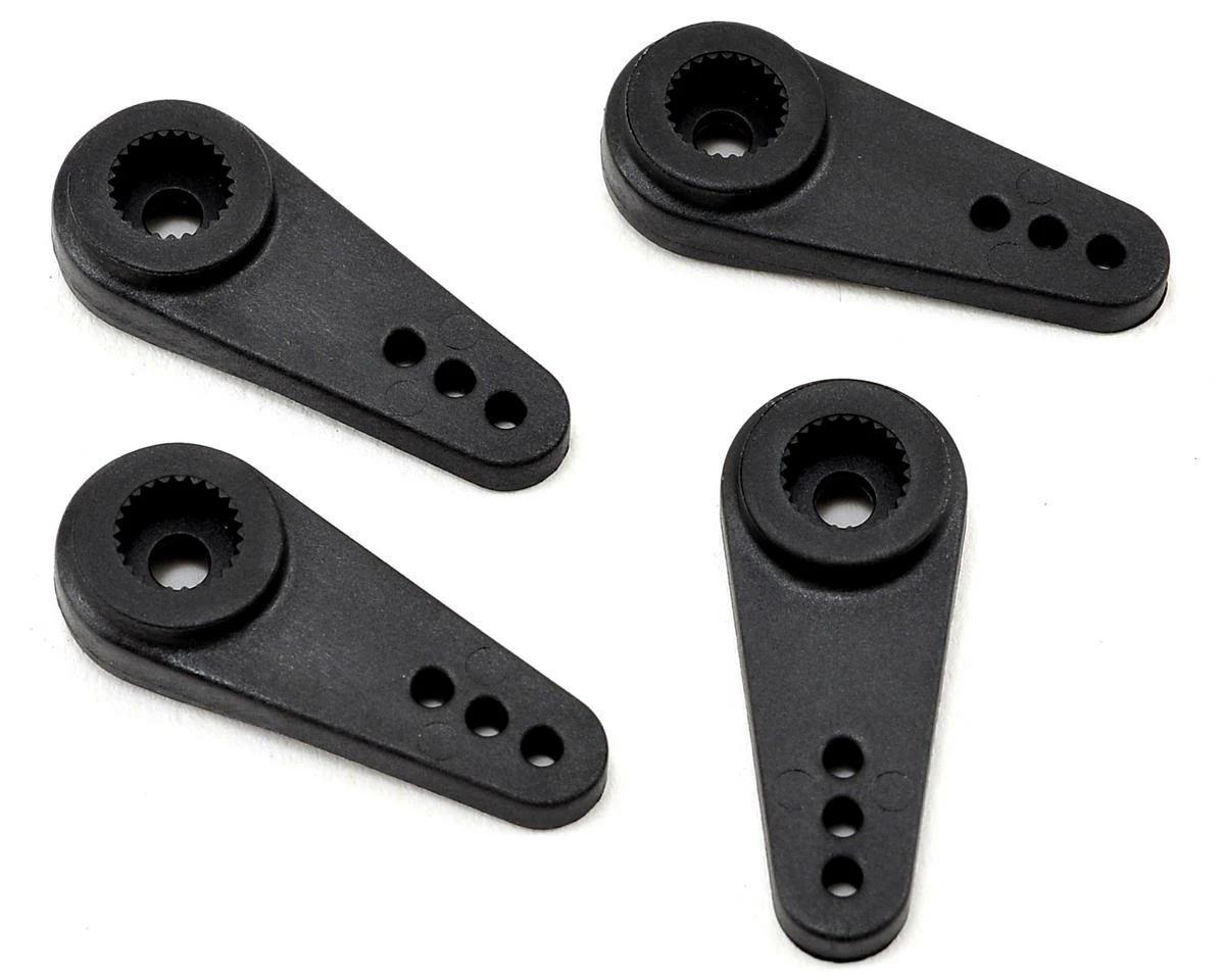 This is a pack of four Mikado 20mm Carbon Infused Servo Arms. These arms are intended for servos using a 25 Tooth spline and are made from a plastic/carbon mixture for additional strength.