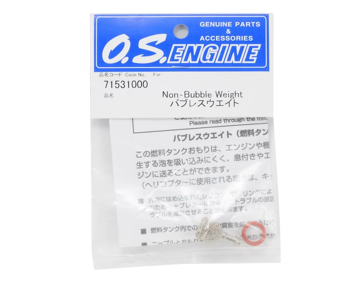 This is a O.S. Engines Bubbleless Fuel Pick-Up (clunk) Weight for Airplane and Helicopter Fuel Tanks. The weight attaches to fuel tubing and is put into an aircraft’s fuel tank. This Bubbleless Clunk is plated throughout to prevent corrosion and its mesh design prevents bubbles from entering the fuel line and causing damage to the engine. The silicone-rubber O-ring prevents internal damage to fuel tank by acting as a bumper and the fuel line connection barb and weight are positively joined together to eliminate the possibility of separation.