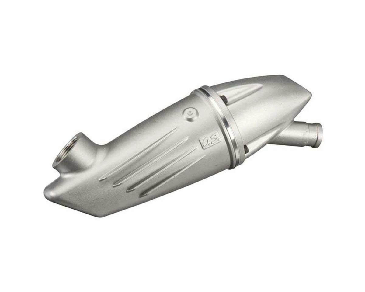 This is an O.S. F6040, GF40 Silencer Body, a two-piece aluminum construction steel header pipe.