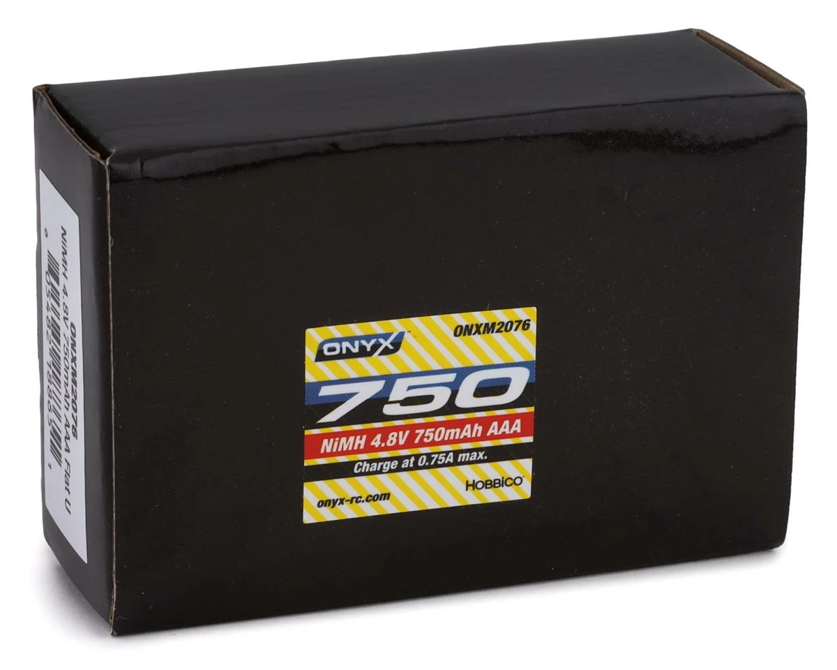 This is the Onyx 4-Cell AAA Flat NiMH Receiver Battery, featuring 4.8 Volts, 750mAh of capacity and a universal receiver plug.