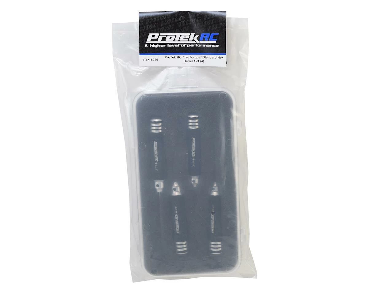 ProTek R/C “TruTorque” hex drivers feature lightweight machined aluminum handles that have been knurled to provide a high leverage, non slip surface that will be comfortable to use during long wrenching sessions. The tool size is etched into the handle for easy identification and a black rubber cap is fitted to the end to increase comfort during use. The precision cut tool steel tips provide an exceptional fit with the fastener, and feature a bronze colored finish that not only looks good, but also helps to protect the steel from corrosion. Finally, the tool sets include a snap lock case and foam insert that will store your tools safely and securely when not in use.