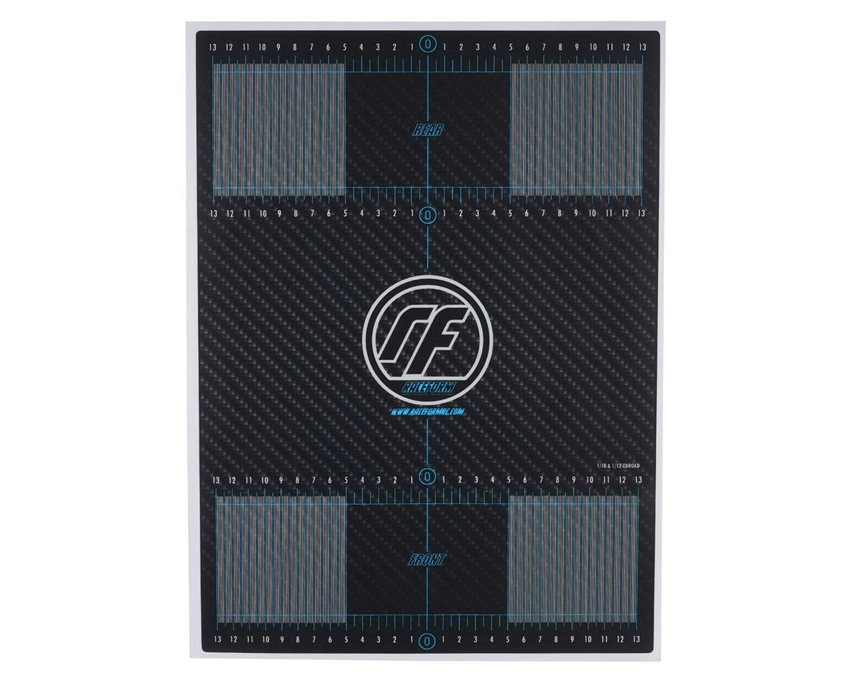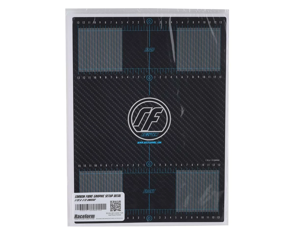 The Raceform 1/10 and 1/12 On-Road Carbon Fiber Graphic Setup Decal is a great way to upgrade the look of your set-up board or work bench.