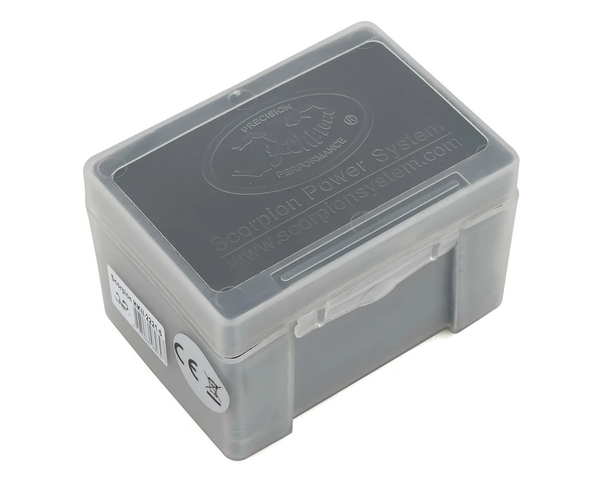This is the Scorpion HKII-2221-6 V2 Brushless Motor. The Scorpion HK Series Brushless Motors are built from the best materials available, and are designed to provide both quality and performance at an affordable price. Scorpion starts with high quality aluminum alloy parts that are produced on the latest CNC milling machines. These parts are then gold anodized to provide a beautiful, long-lasting finish. The stators are made with 0.2mm laminations to give maximum efficiency, and minimum Eddy current losses. The stators are epoxy coated to prevent shorts, and are wound with wire that is rated at 180 degrees C (356 F). The magnets used in Scorpion Motors are custom manufactured to be able to withstand temperatures of up to 200 degrees C (392 F).