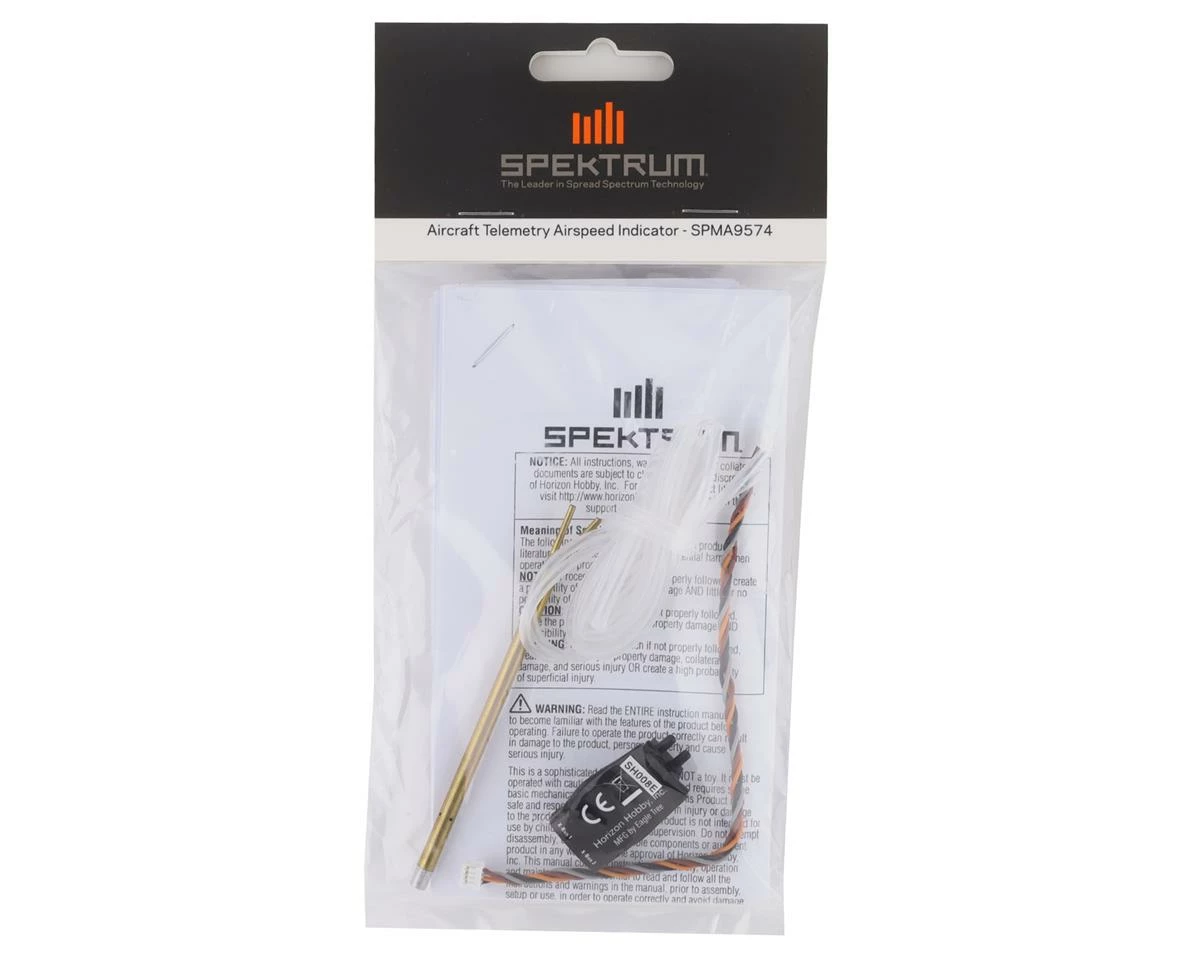 The Spektrum Aircraft Telemetry Airspeed Indicator provides speed data from approximately 15 MPH to 350 MPH in 1 MPH increments. The sensor is simple to use and set up. Simply plug the airspeed indicator into a TM1000 module and follow the instructions included with the sensor. Once finished, the speed data will be displayed on your telemetry compatible DSM2/DSMX Transmitter, or delivered to your Spektrum STi equipped mobile device.