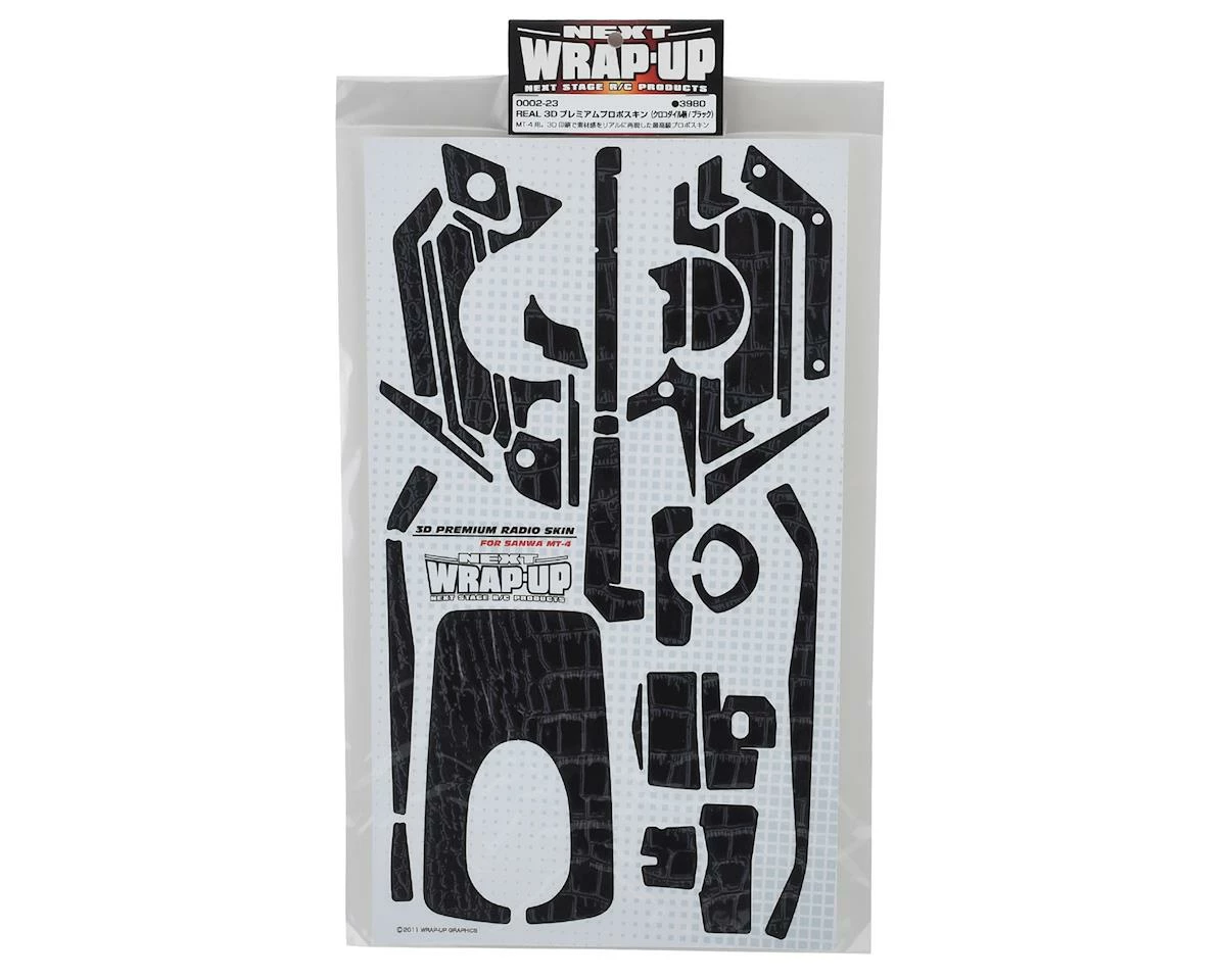 This is a WRAP-UP NEXT REAL 3D Premium MT-4 Transmitter Black Crocodile Skin, a textured set of decals to add depth and style to your boring old radio. This decal sheet has 3D effects for a greater depth of detail, making the crocodile skin texture seem alive.