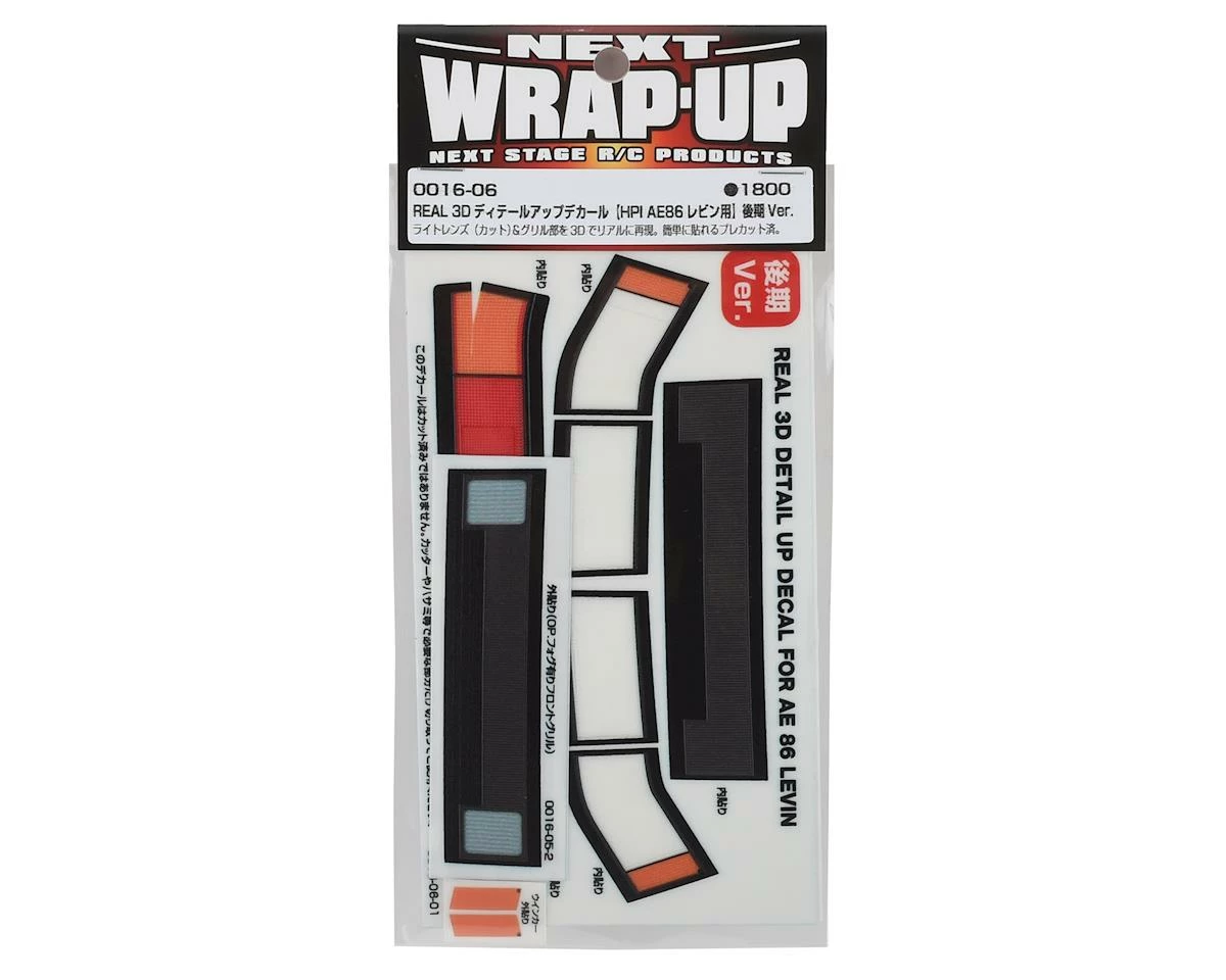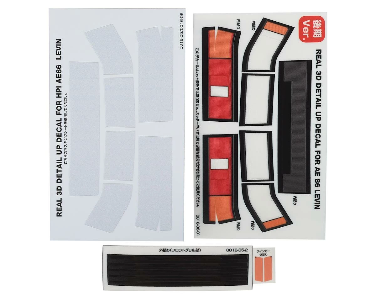 This is a WRAP-UP NEXT REAL 3D Detail Up HPI AE86 LEVIN Kouki Decal, a decal to add realism to your rc drift set up. This decal sheet has 3D effects, making them lightly textured to add further depth and details, especially when used with installed LEDS (not included). This set realistically reproduces the unevenness of the grille and the lens cut of the light, effects that could not be expressed with normal decals, to achieve the highest reality. Comes with pre-cut special masking to make application simple.