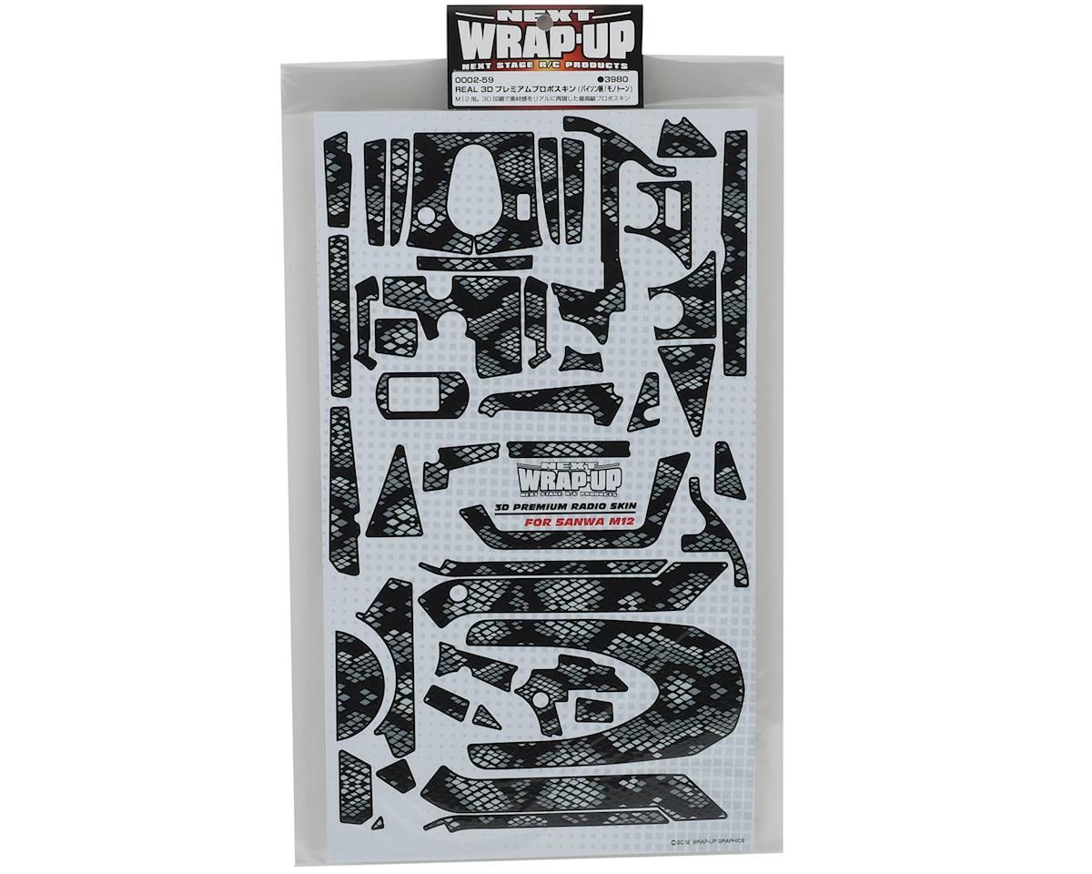This is a WRAP-UP NEXT REAL 3D Premium M12 Transmitter Monotone Python Skin, a textured set of decals to customize and add style to your boring old radio. This decal sheet has 3D effects for a greater depth of detail, making the snake skin texture seem alive.
