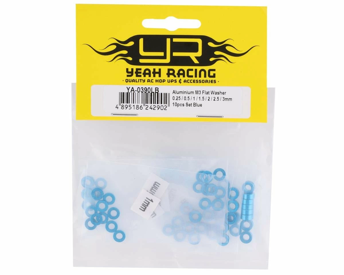 Yeah Racing 3×0.25/0.5/1.5/2/2.5/3mm Flat Washer Set. These optional washers are made from high quality aluminum and anodized blue for a clean look.